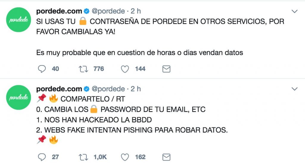 El primer paso que ha dado Pordede, es decir a los usuarios de su web, que cambien la clave de acceso, para que en la medida de lo posible no puedan robarles cuentas de Facebook, Twitter, etc.